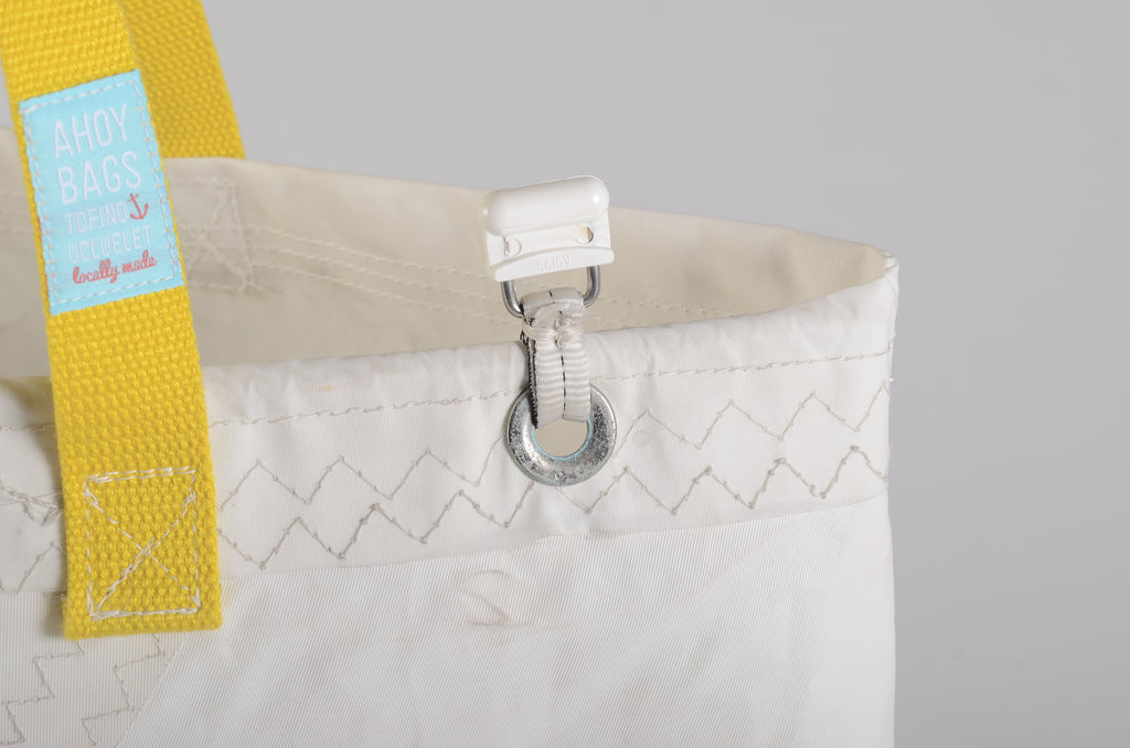 This beautiful bespoke Large Beach Bag is made from upcycled sails here on the Pacific Rim of Vancouver Island. This Bags can haul it all – A trip to the beach, the gym or into the weekend. The combination of sailcloth, colors and features is one-of-a-kind and available only once.