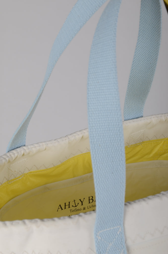 This beautiful bespoke Large Beach Bag is made from upcycled sails here on the Pacific Rim of Vancouver Island. This Bags can haul it all – A trip to the beach, the gym or into the weekend. The combination of sailcloth, colors and features is one-of-a-kind and available only once.